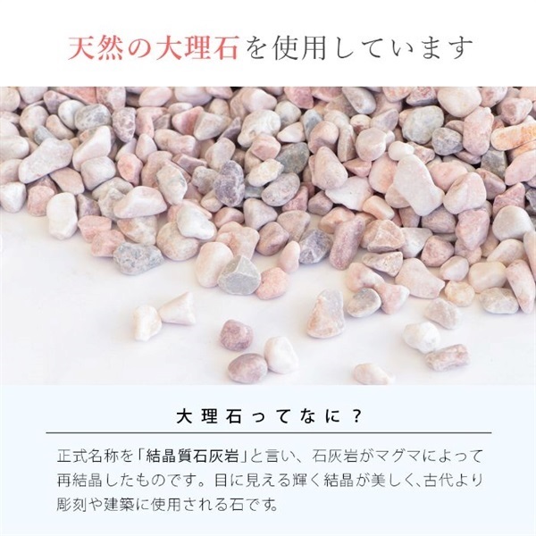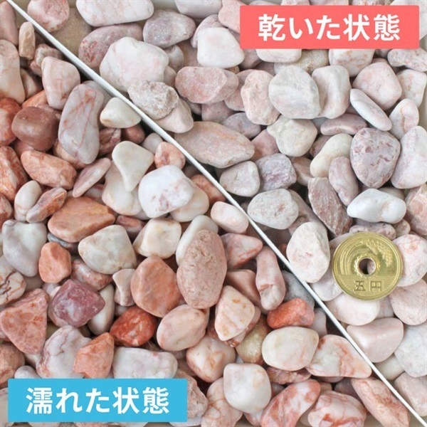 可愛らしい印象のピンク色、大理石の玉砂利です。