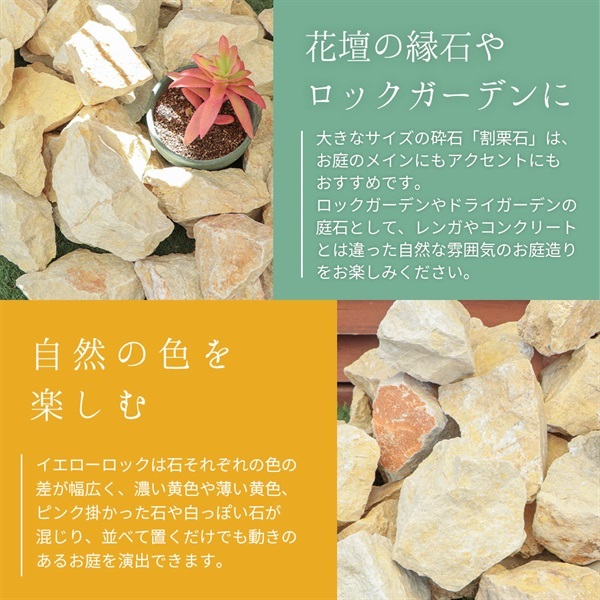 ロックガーデンにおすすめ、黄色の大理石割栗石です。